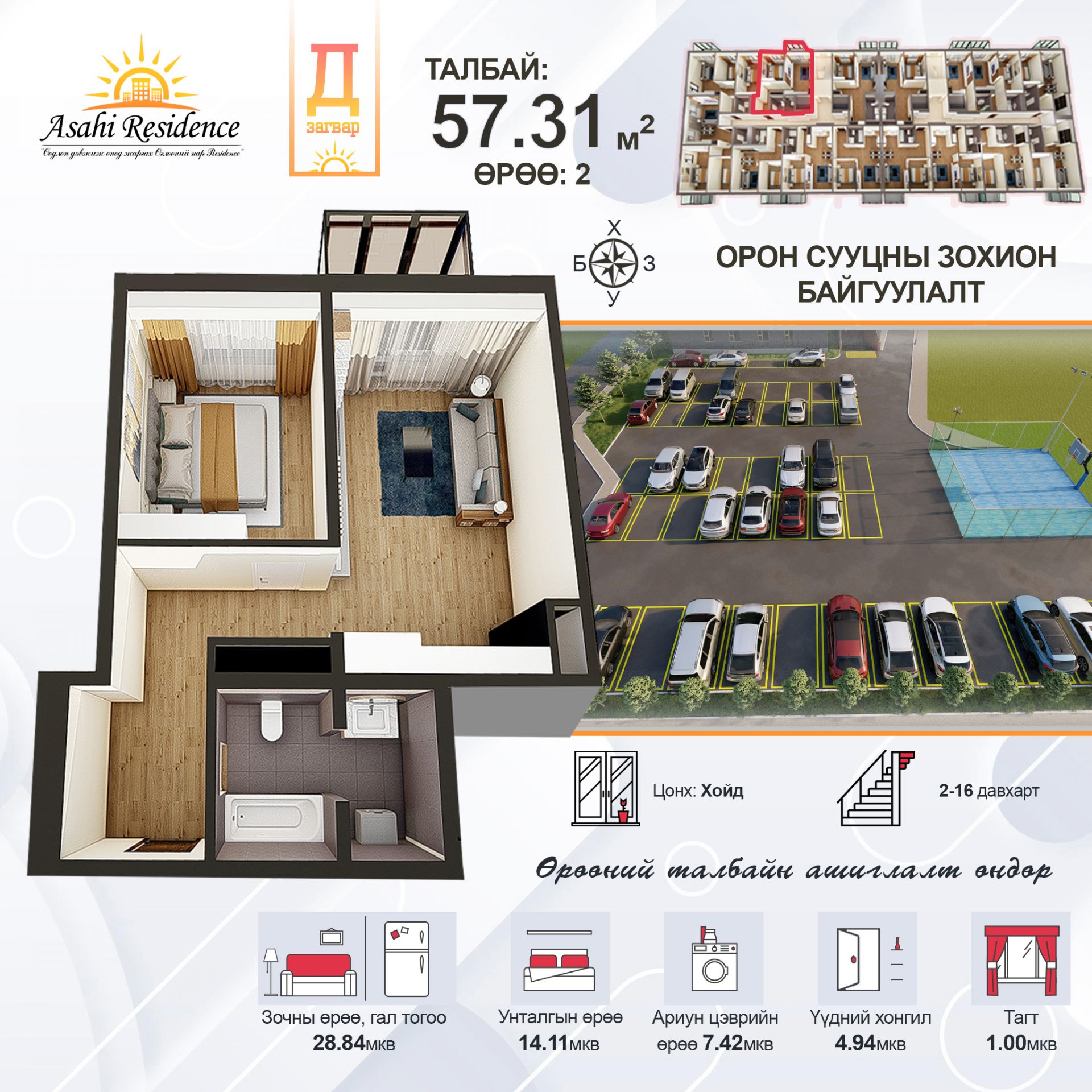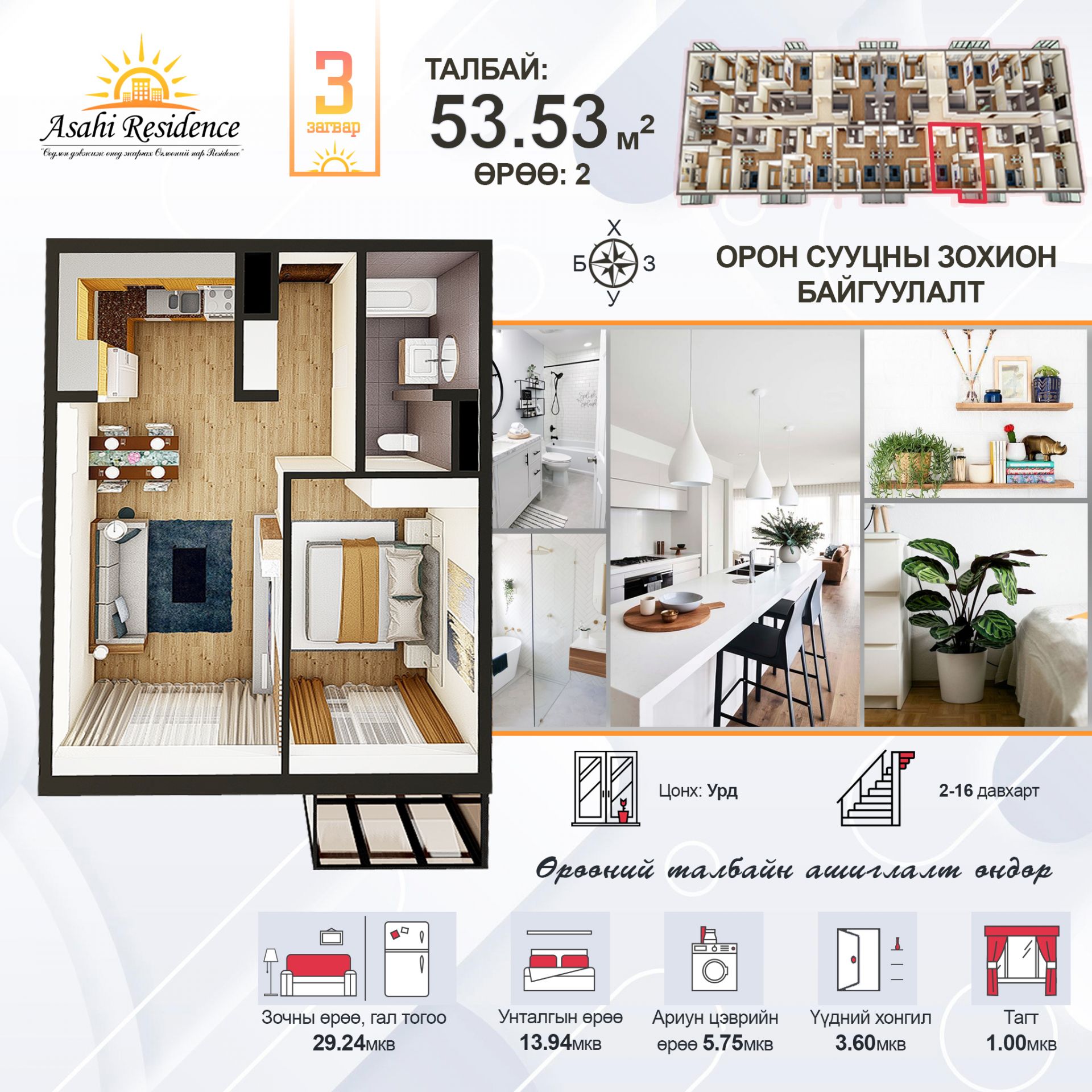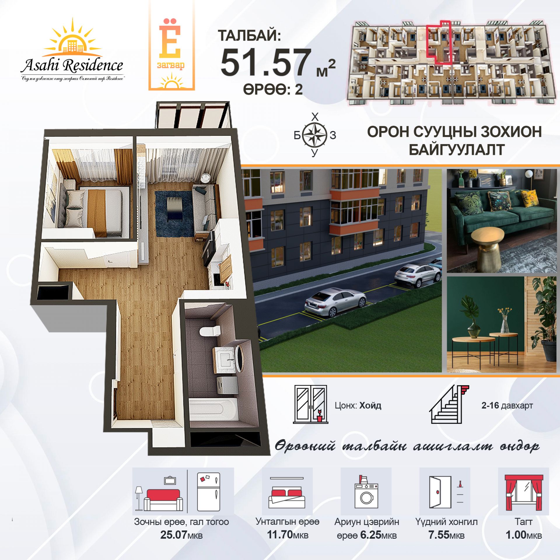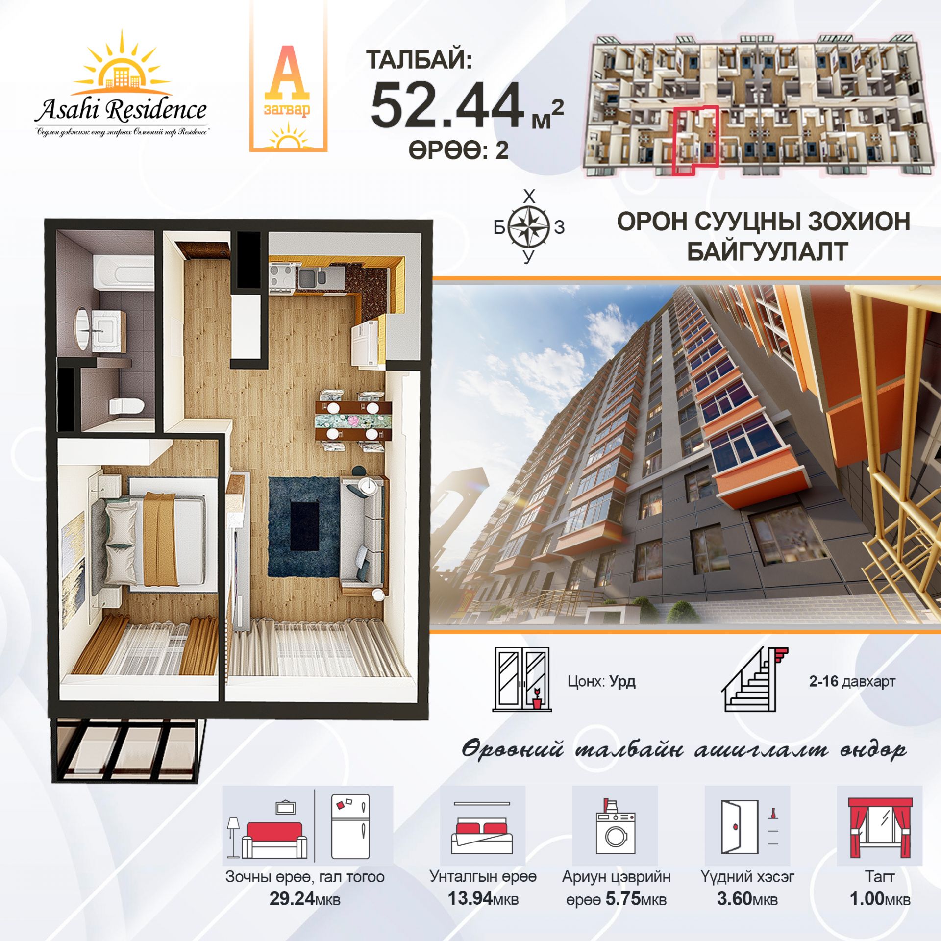 Дүүхээ ХХК компанийн 2 дахь төсөл болох сүндэрлэн буй Asahi Residence. Баянзүрх дүүргийн 10-р хороо, Ботаникийн автобусны буудлын чанх хойно Амгалан цогцолбор сургуулийн яг хажууд үйлчилгээтэй 345-н айлын 2 блок орон сууц, 2024 оны 3 улиралд ашиглалтанд орно.